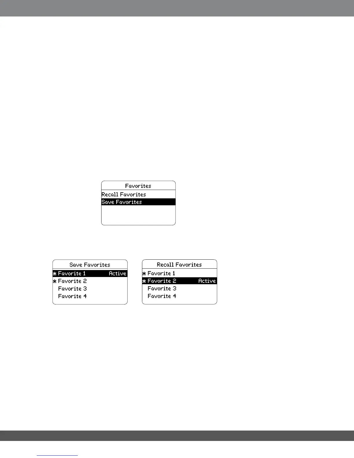 selection to indicate into which Favorites position you have stored the current conguration.