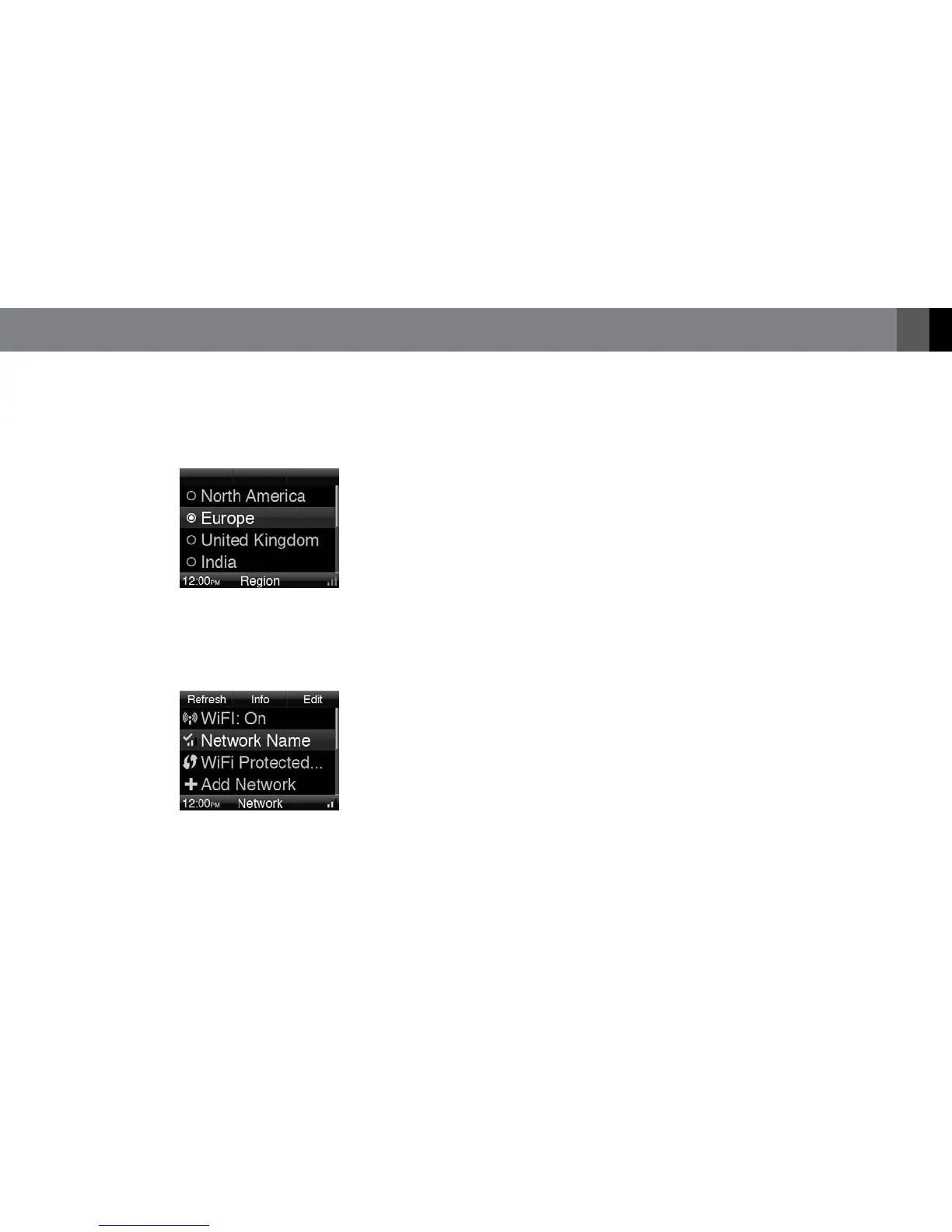 • [Network Name 1 – 4]: The display screen lists each available