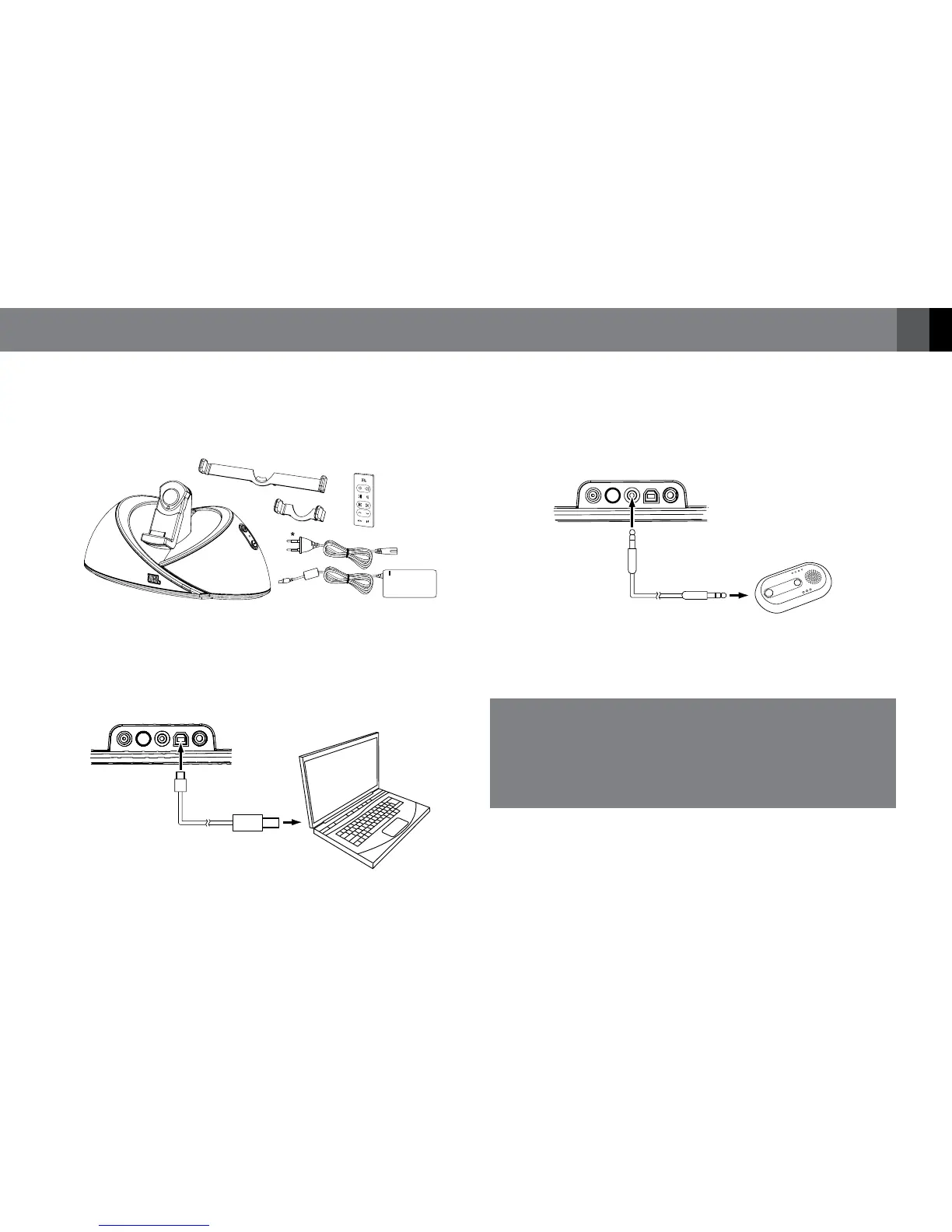 1. Carefully unpack your speaker dock, and confirm that all the items