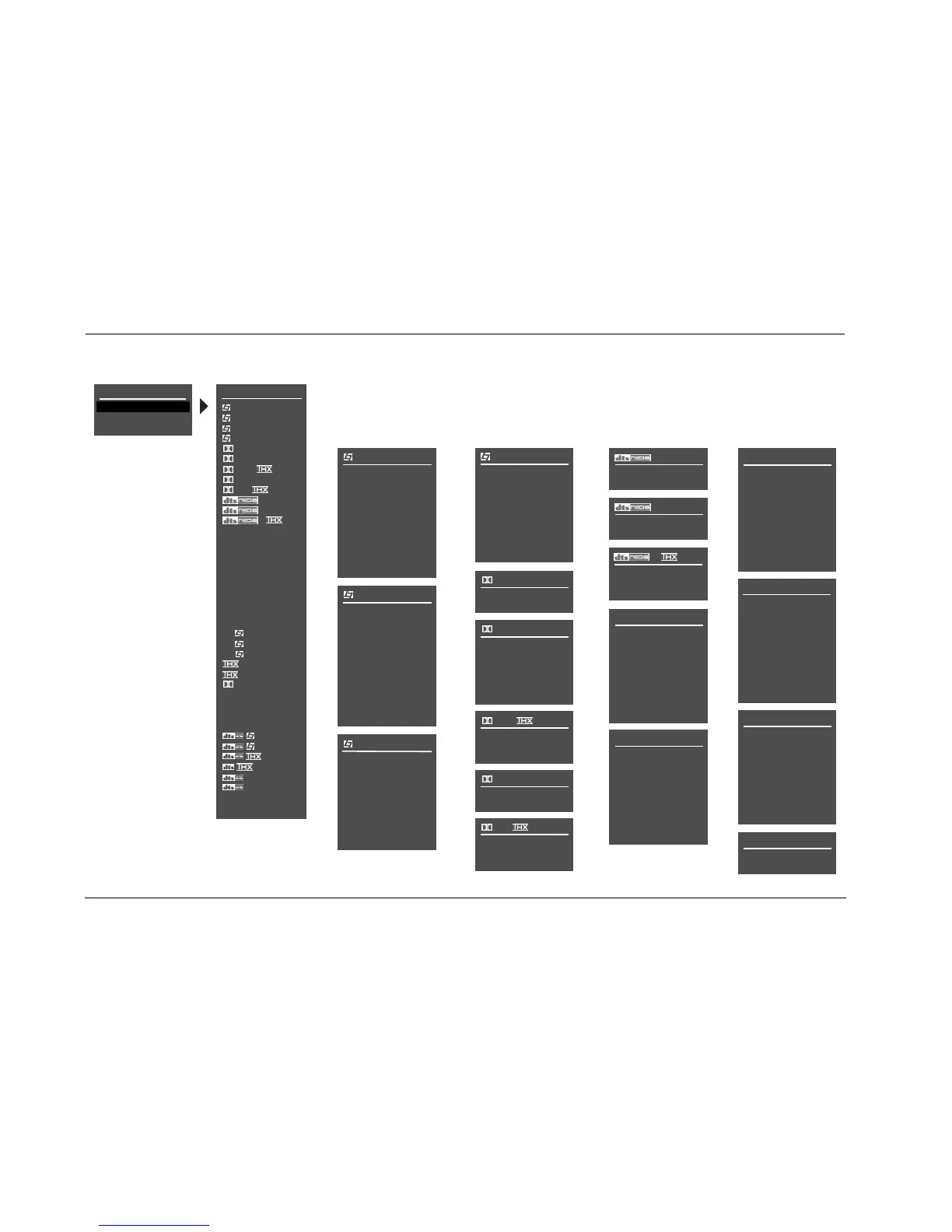 next page. The parameters on the left side of these menus differ from listening mode to listening mode. The settings on the