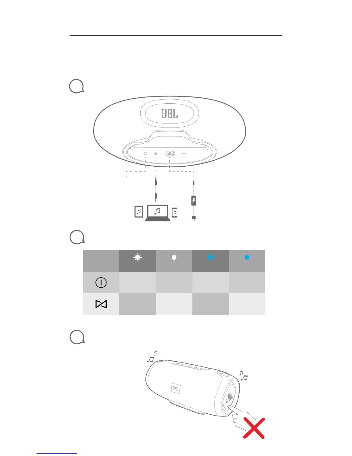 JBL PLAYLIST 150 - Speaker Connections; LED Indicator Status; Important Warning: Passive Radiator