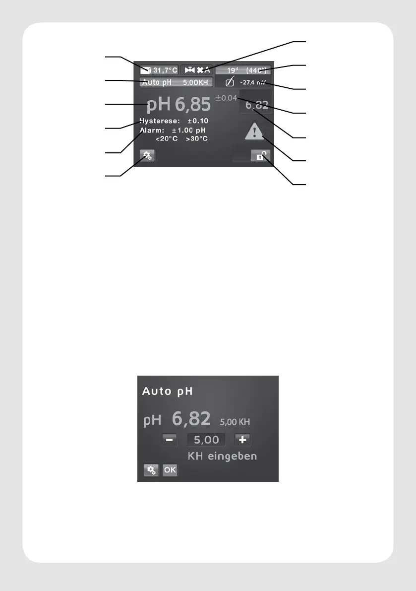 den Menüpunkt „Auto pH“ und bestätigen Sie mit OK. Geben Sie nun durch Tippen auf die