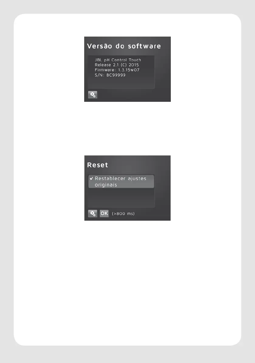 A versão do software actualmente armazenada e o número de série do aparelho são visuali-