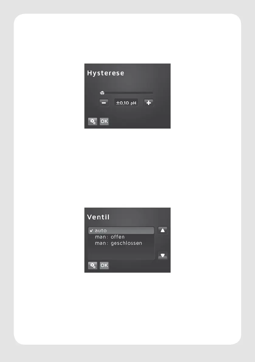 Einstellungen > Hysterese wählen > Mit OK bestätigen > Mit „plus“ und „minus“ gewünsch-