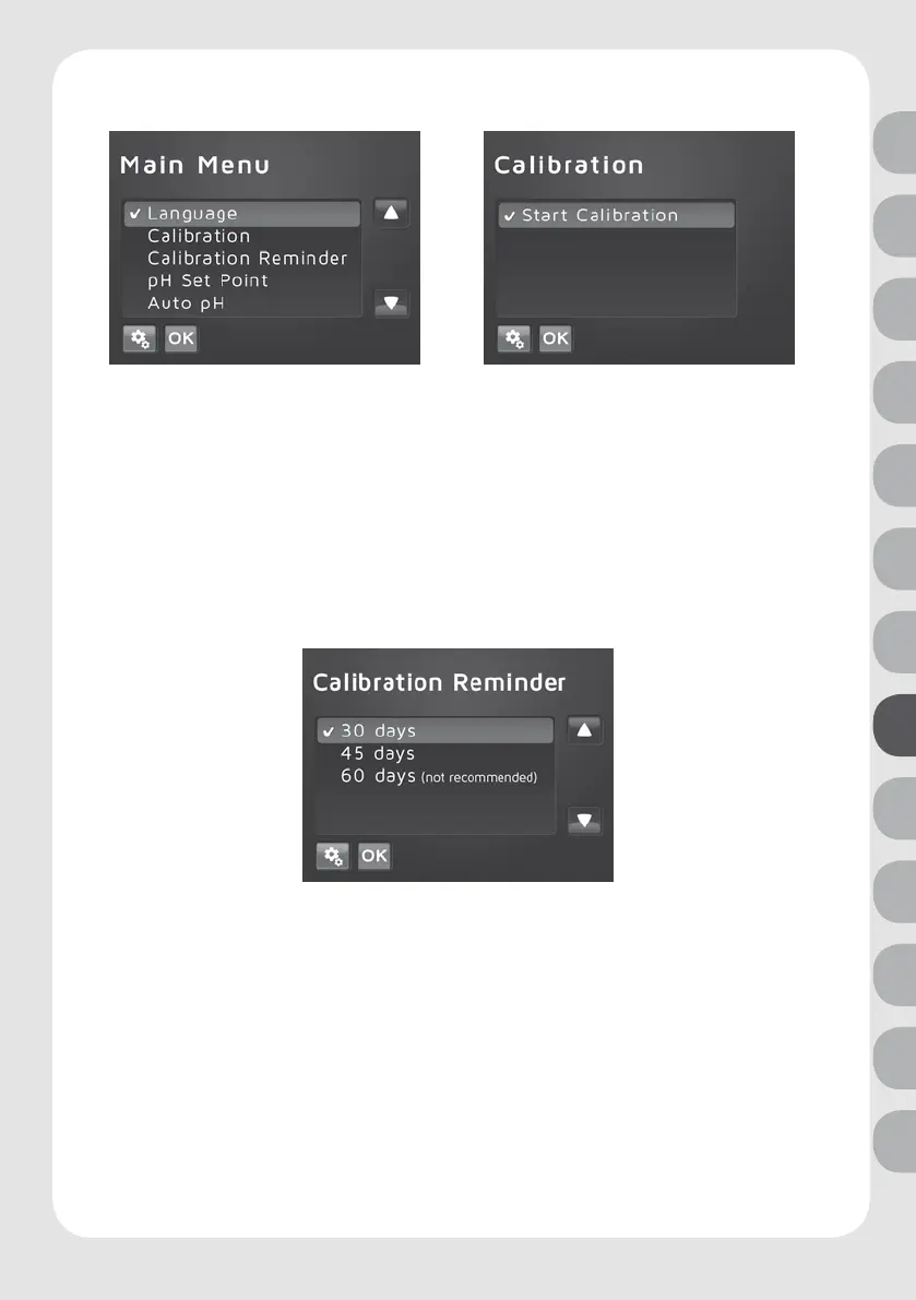 Inställningar > Välj Calibration Reminder > Bekräfta med OK > Välj tidsintervall > Bekräfta