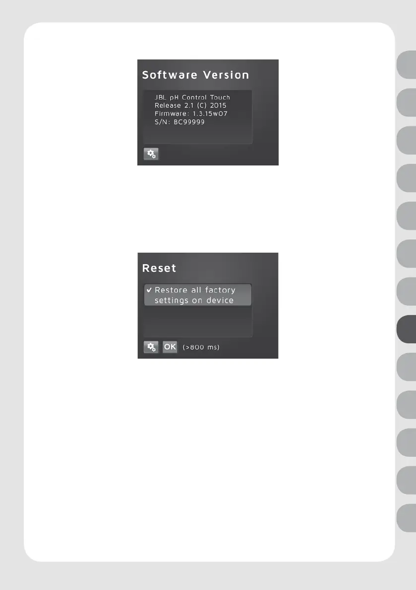 Här visas den aktuellt installerade mjukvaruversionen och pH-datorns serienummer.