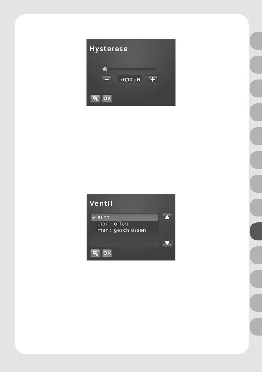 Einstellungen > Ventil > „OK“ > zvolit buď „auto“ nebo „man oen“ či „man geschlossen“ >