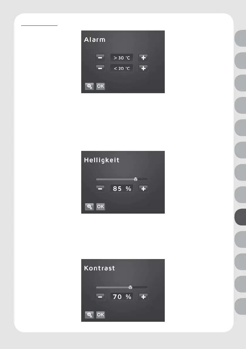 „Einstellungen“ > „Helligkeit“ > „OK“ > nastavit ikonami „plus“ a „minus“ > „OK“.