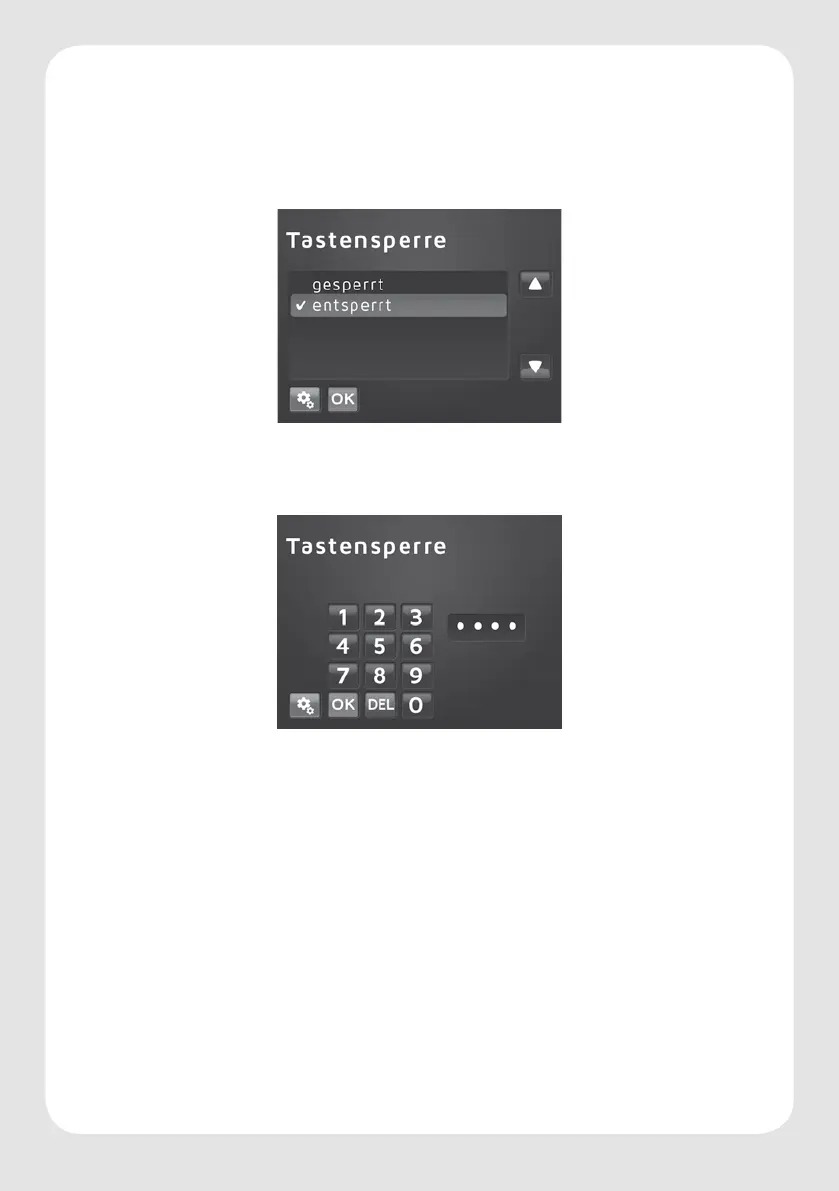 Einstellungen > Tastensperre > „OK“ > zvolit „gesperrt“ nebo „entsperrt“ > „OK“.