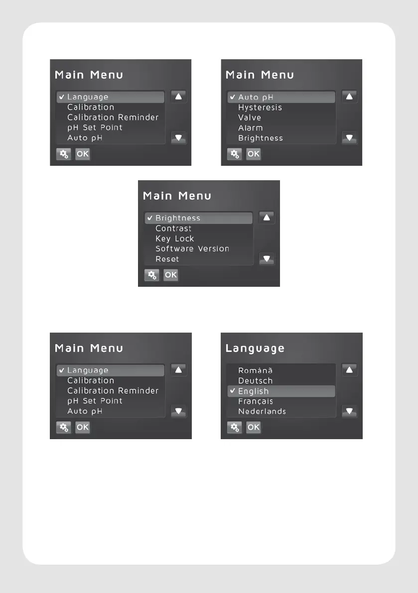 Settngs (Ayarlar)> Language (Dl) > OK (Tamam) tuşuna dokunarak onaylayın > stedğnz