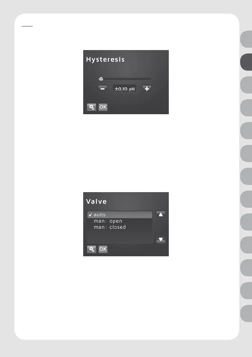 chapter 5.1. Values from 0.1 up to 0.5 pH units can be selected. Factory setting: 0.1 pH