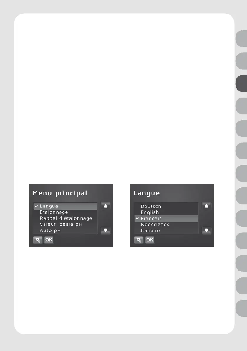 En touchant les symboles èches, sélectionnez la langue souhaitée et validez avec OK. Les