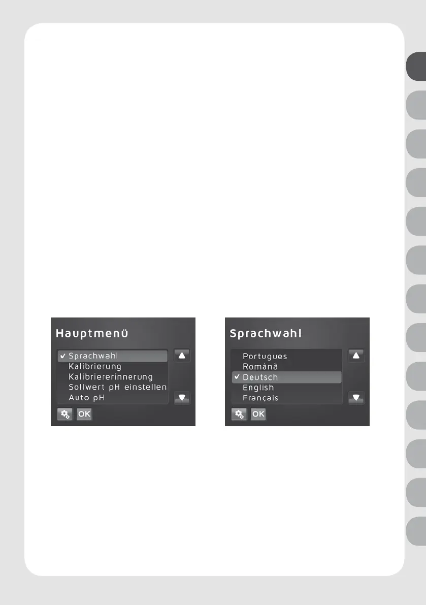 Sollte statt „Sprachwahl“ die Werteübersicht (Kap. 4) erscheinen, wurde das Gerät bereits