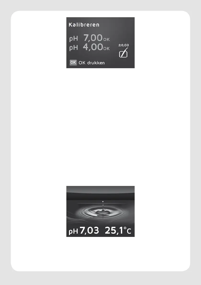ruststand. U ziet dan een druppel en de permanente aanduiding van de pH en temperatuur