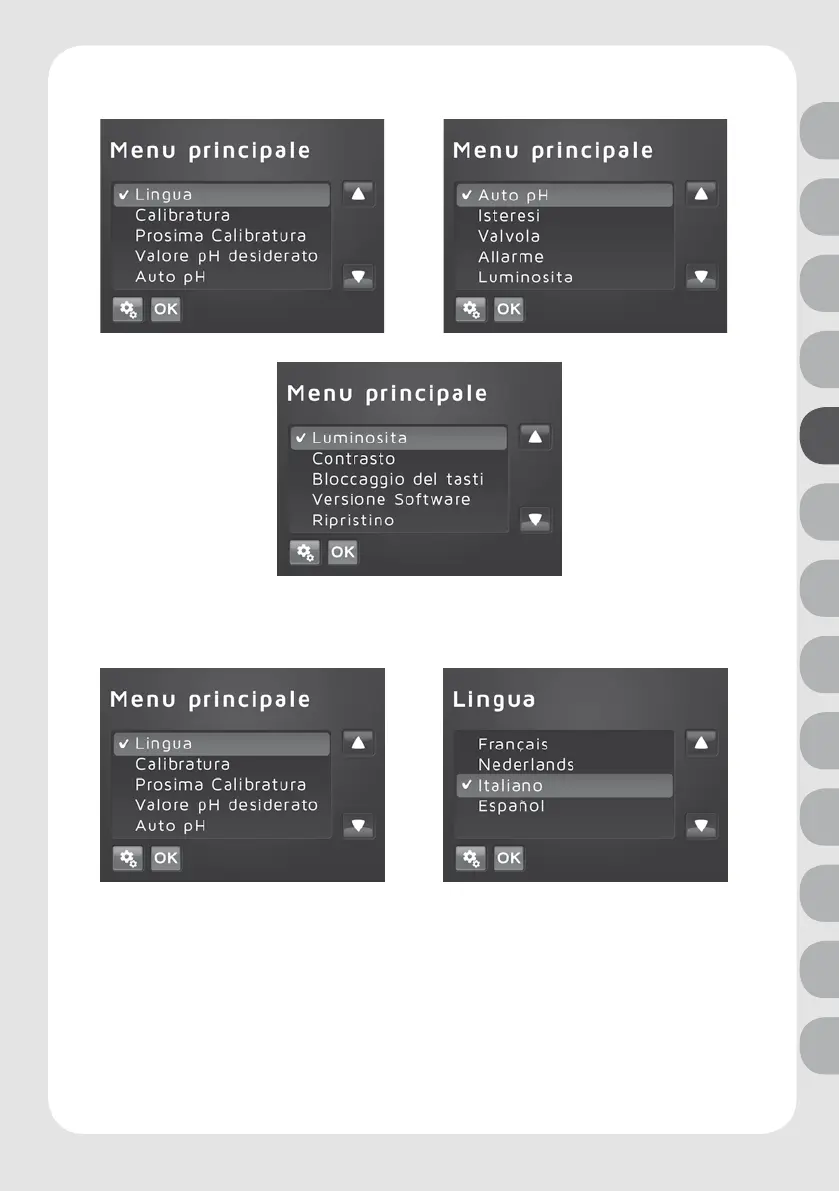 Impostazioni > scelta della lingua > confermare con O.K. > scegliere la lingua desiderata >