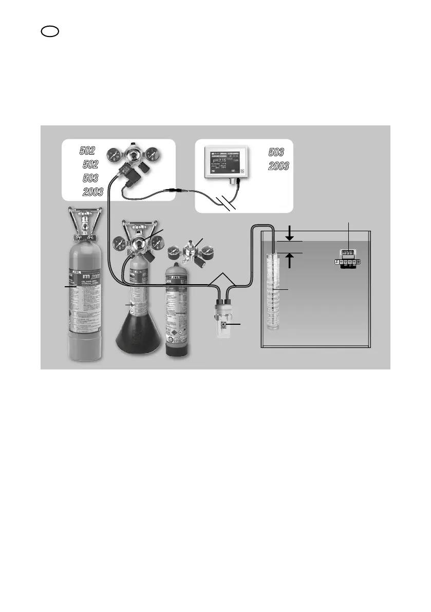 visas inte. Endast kopplingskabeln mellan pH control och magnetventilen visas på utförandena