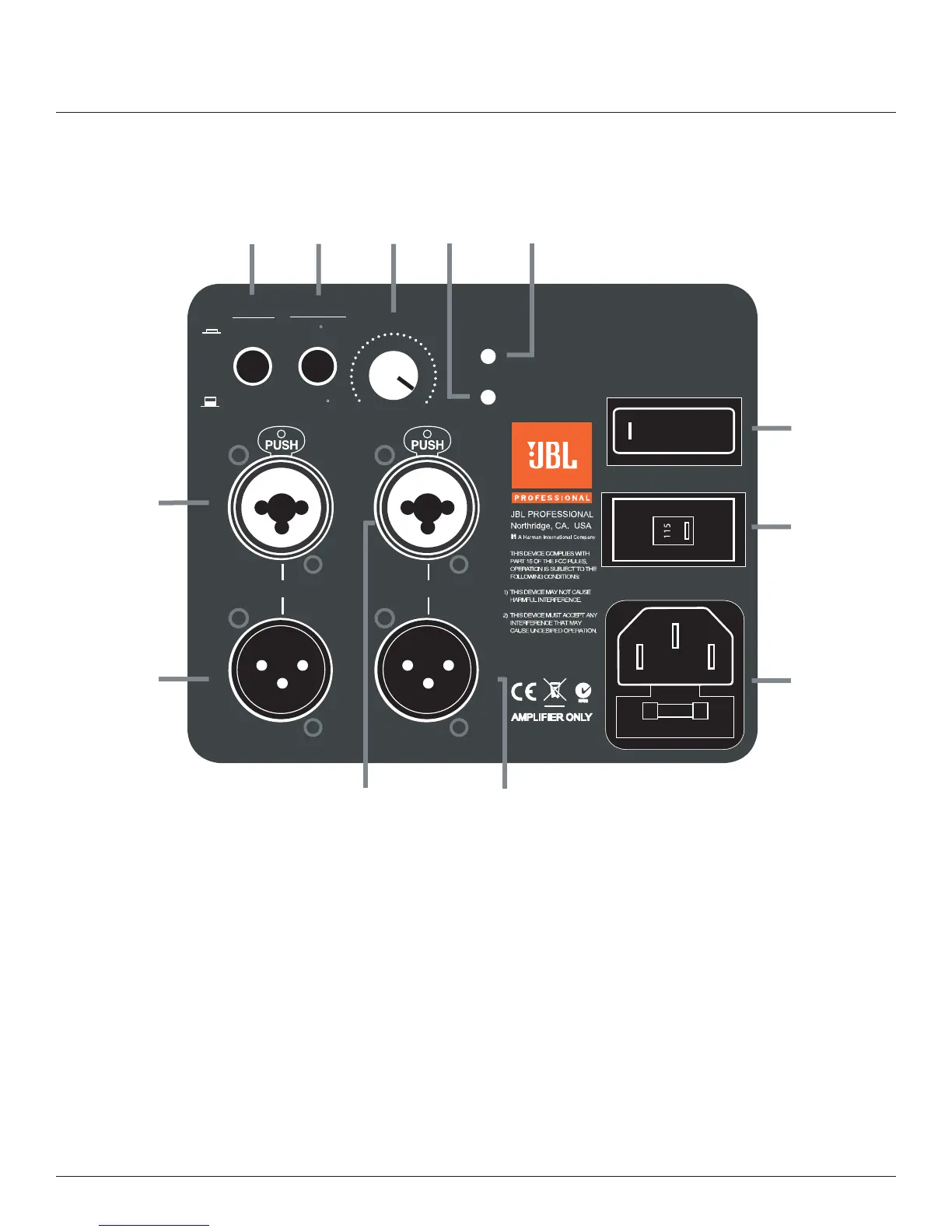 1 - XOVER IN / OUT: Pressing this button engages a high-pass filter at 120 Hz. This 4th order active filter allows