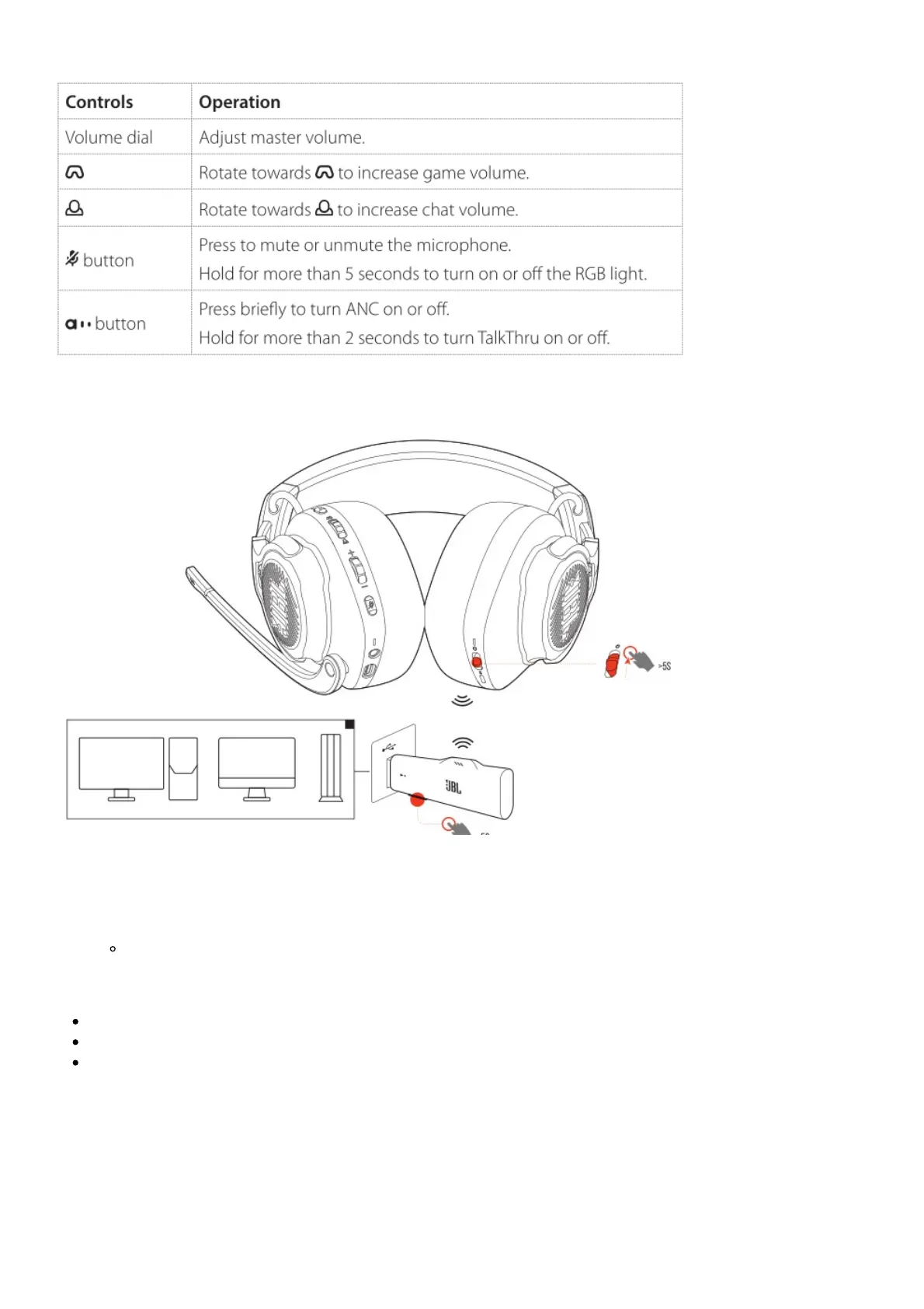 2. On the 2.4G USB wireless dongle, hold CONNECT for more than 5 seconds until the LED flashes