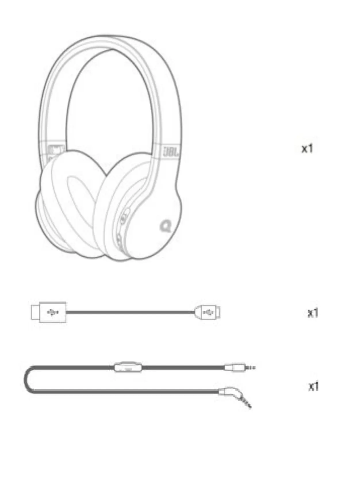 JBL Quincy E55BT - E55 BT Quincy Edition; Charging cable; Detachable audio cable with remote; Carrying pouch, Warning card, Warranty card, Safety sheet, QSG