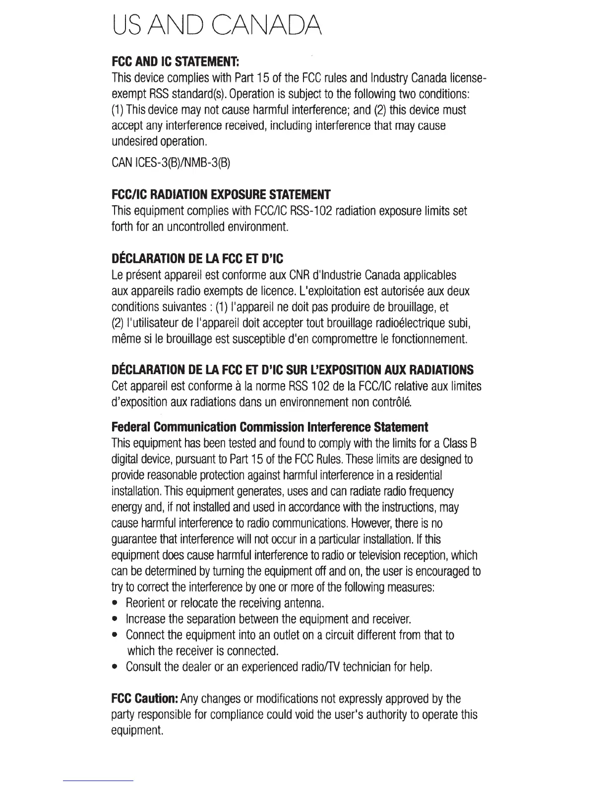 JBL Reflect Contour 2 - FCC and IC Statements; FCC;IC Radiation Exposure Compliance; FCC Interference Statement; FCC Caution on Modifications