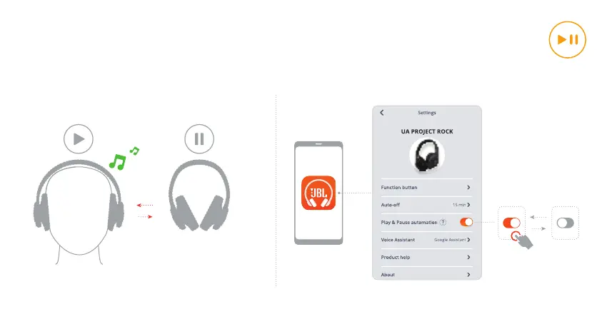JBL ROCK OVER-EAR - Auto Play;Pause