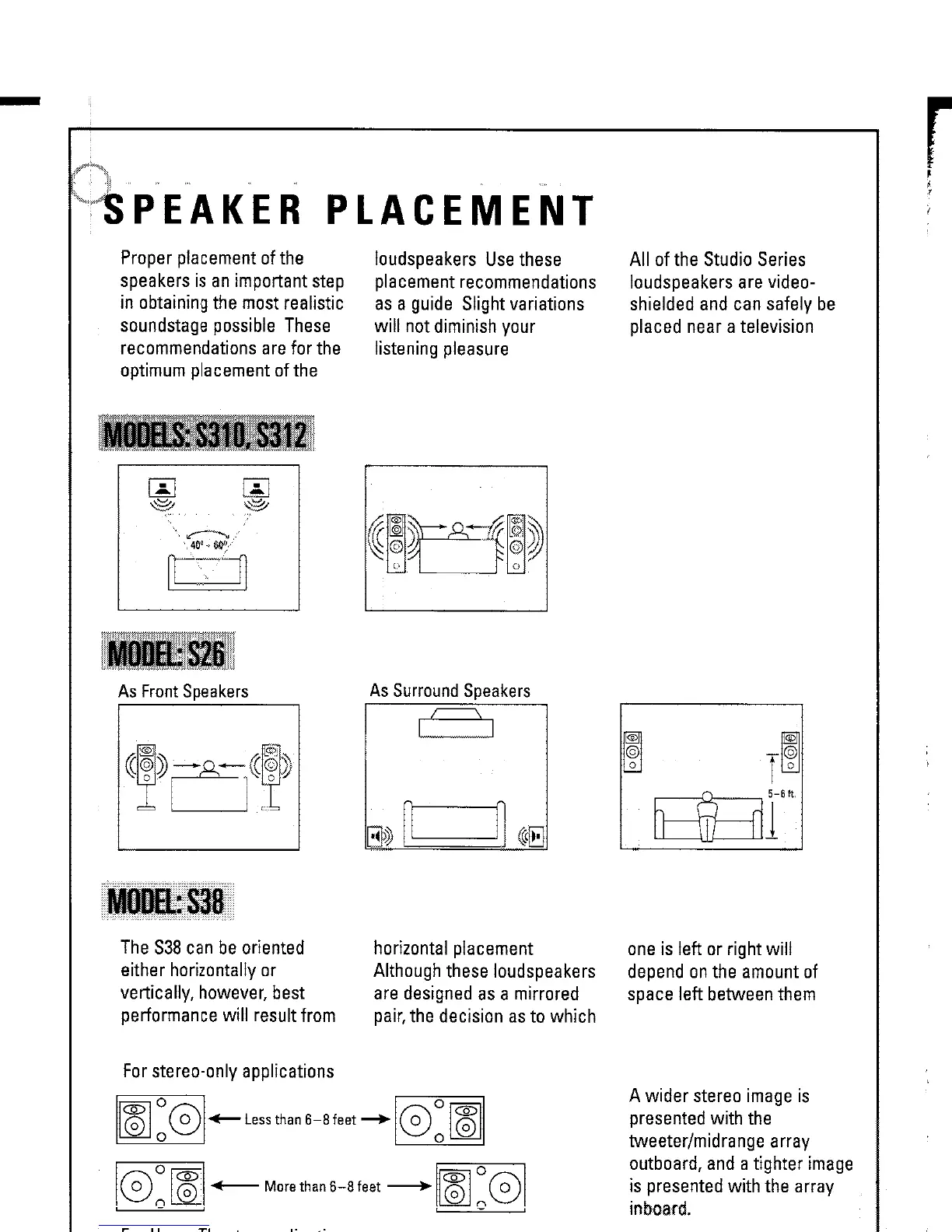JBL S26 Studio Series - Speaker Placement