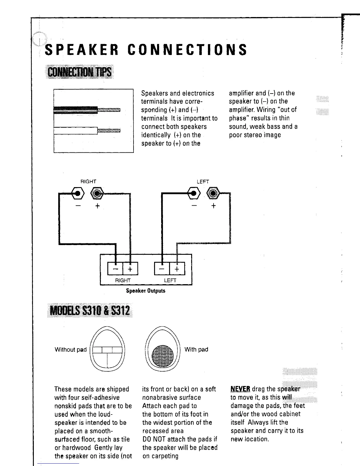 JBL S26 Studio Series - Speaker Connections; Connection Tips