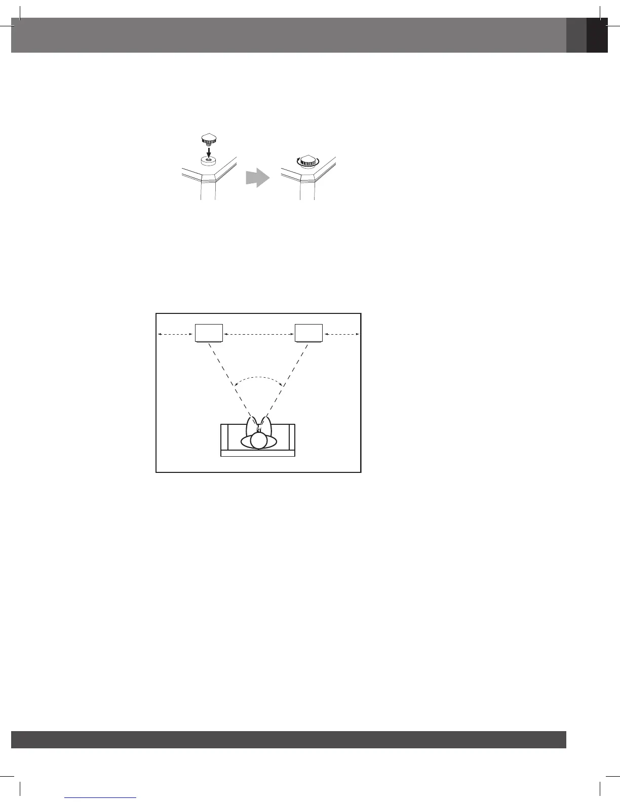 为了决定扬声器的最终放置位置,观察整个房间,并按照下图选择一个位置。