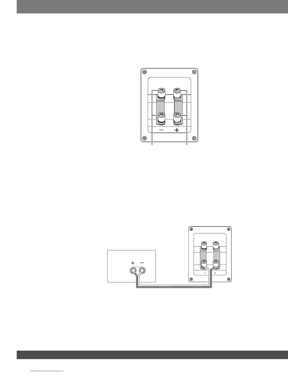 To ensure proper polarity, connect the left- and right-channel “+” connectors on the back of the amplifier or receiver