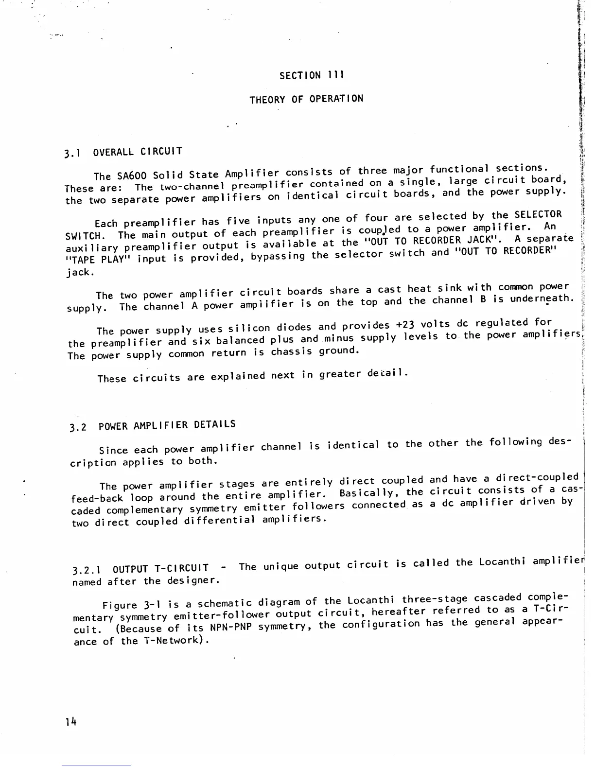 JBL SA600 - THEORY OF OPERATION; 3.2 POWER AMPLIFIER DETAILS