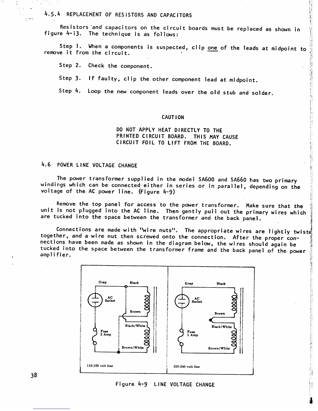JBL SA600 - Replacement of Resistors and Capacitors; Power Line Voltage Change