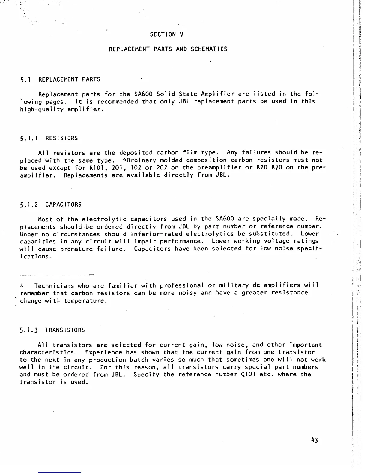 JBL SA600 - REPLACEMENT PARTS AND SCHEMATICS; 5.1 REPLACEMENT PARTS LISTING