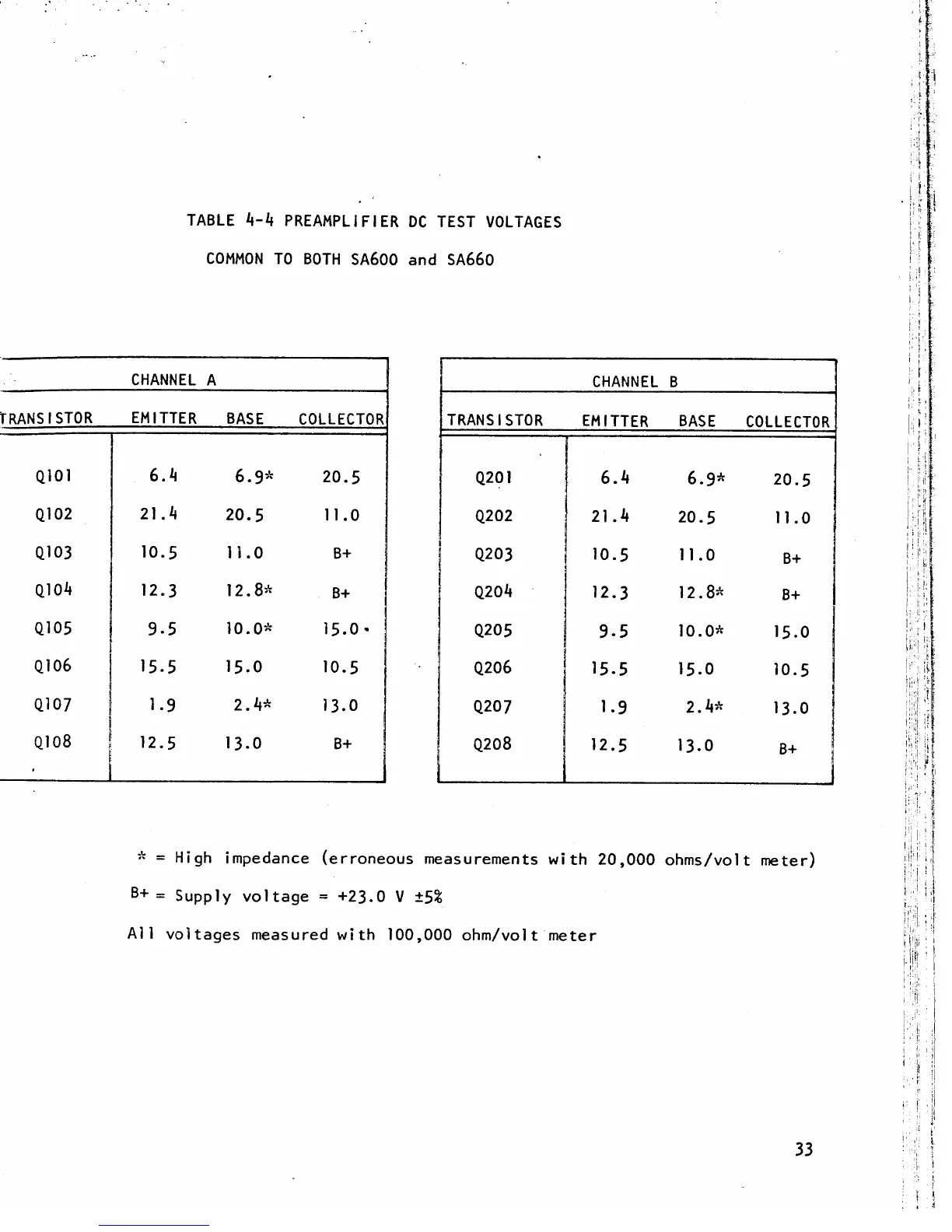 JBL SA660 - Preamplifier DC Test Voltages (Table 4-4)