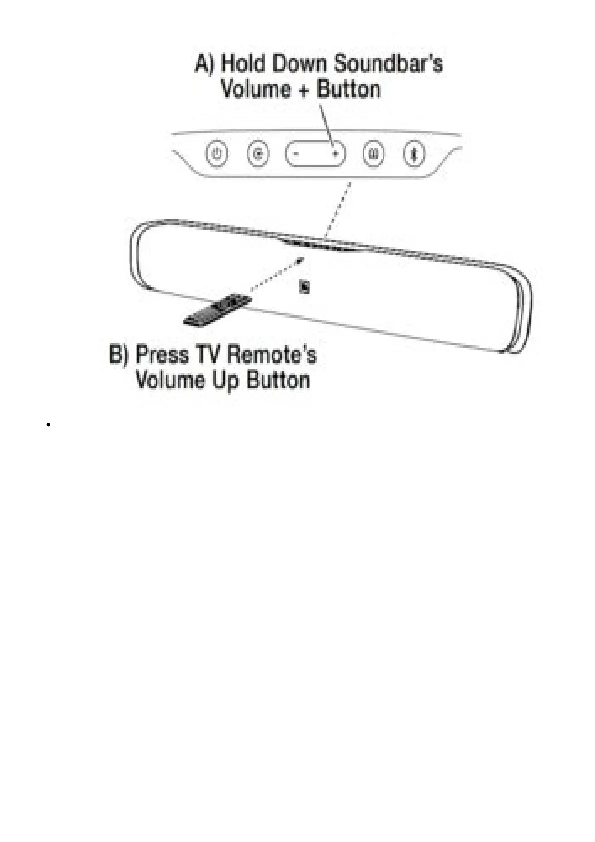 Press the TV remote’s volume down button while pressing and holding the soundbar’s Volume –