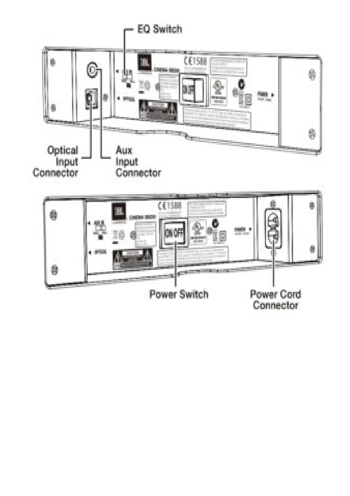 EQ switch: Use this switch to adjust the soundbar’s bass for either wall or table mounting. If you’re