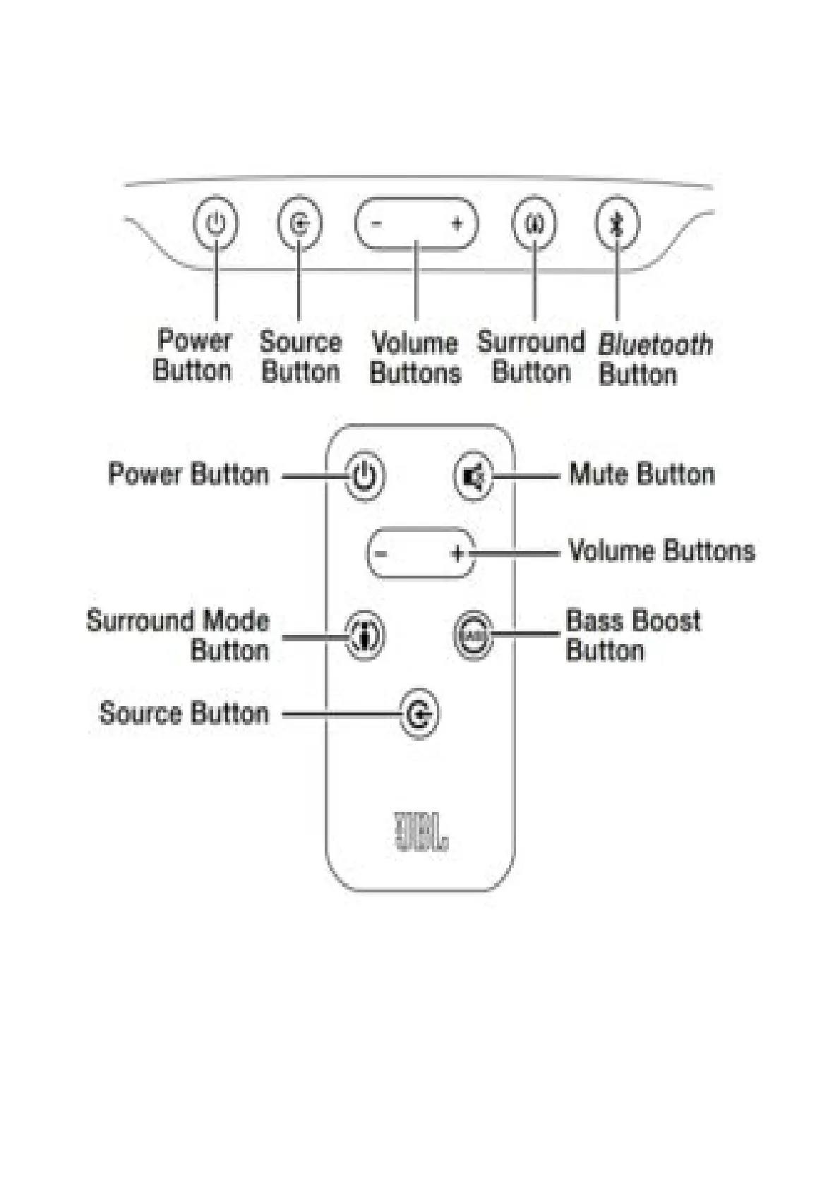 SOUNDBAR TOP-PANEL CONTROLS AND REMOTE CONTROL