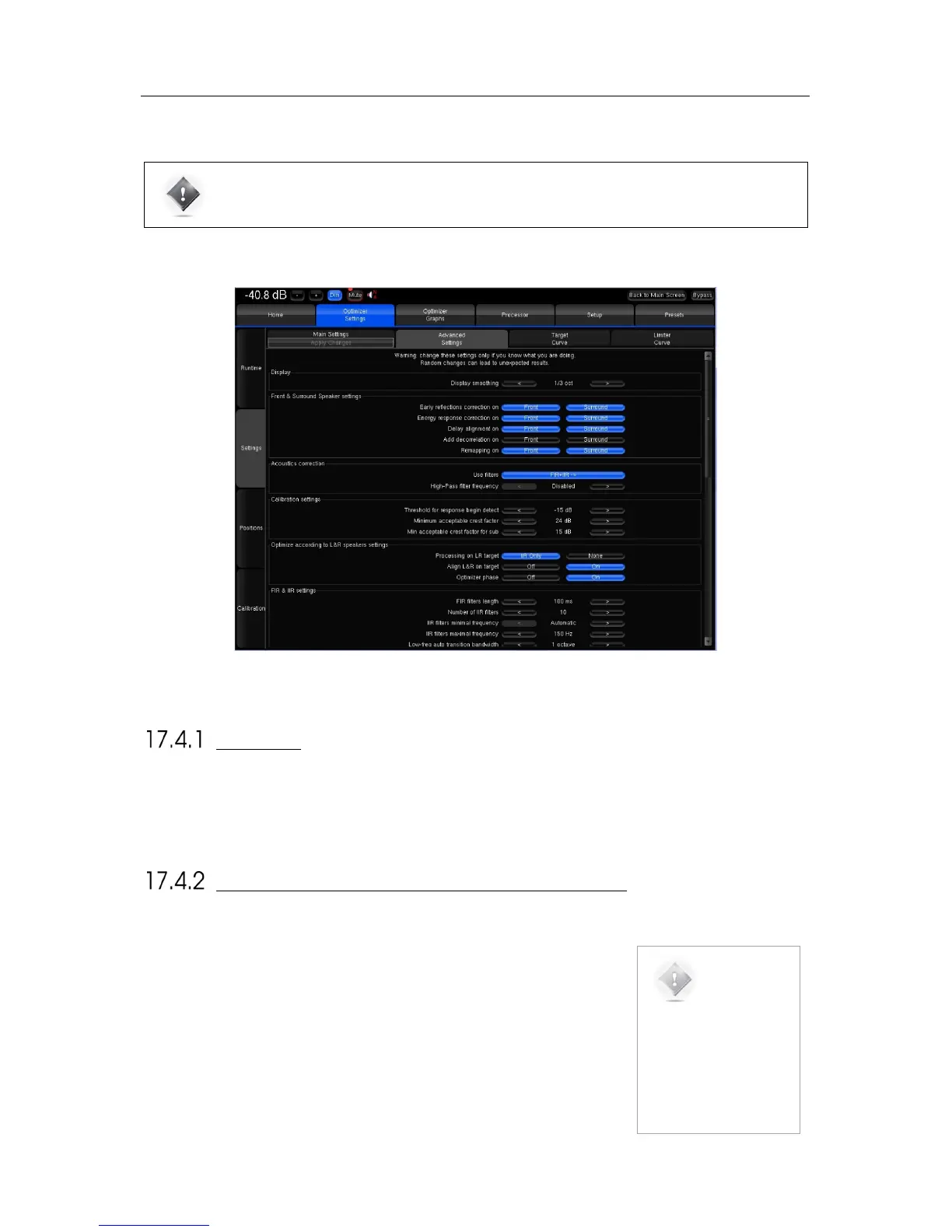 The SDP-75 provides a large set of advanced settings in the Optimizer Settings/Settings/Advanced Settings page: