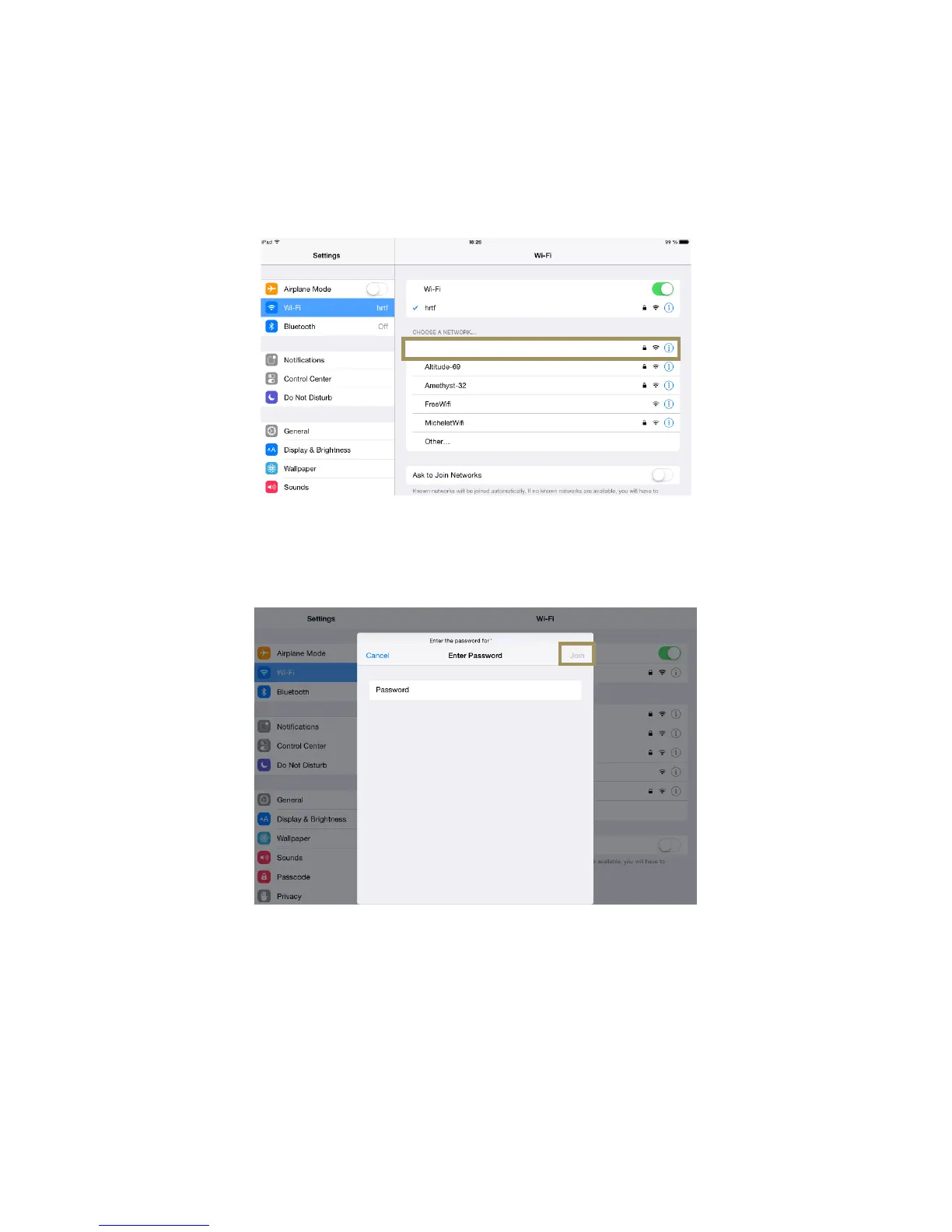 The following screenshots, created on an iPad, are provided as an example of how to connect to the SDP-75 Access