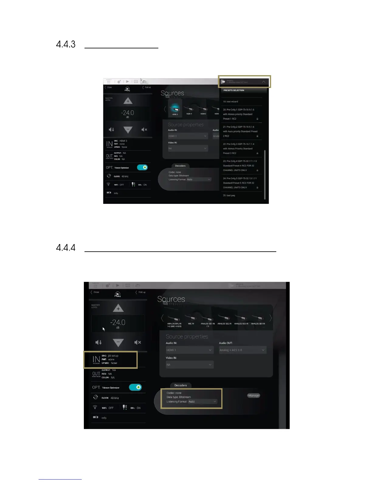 JBL SDP-75 - Preset Selection; Checking the Format of Incoming Audio