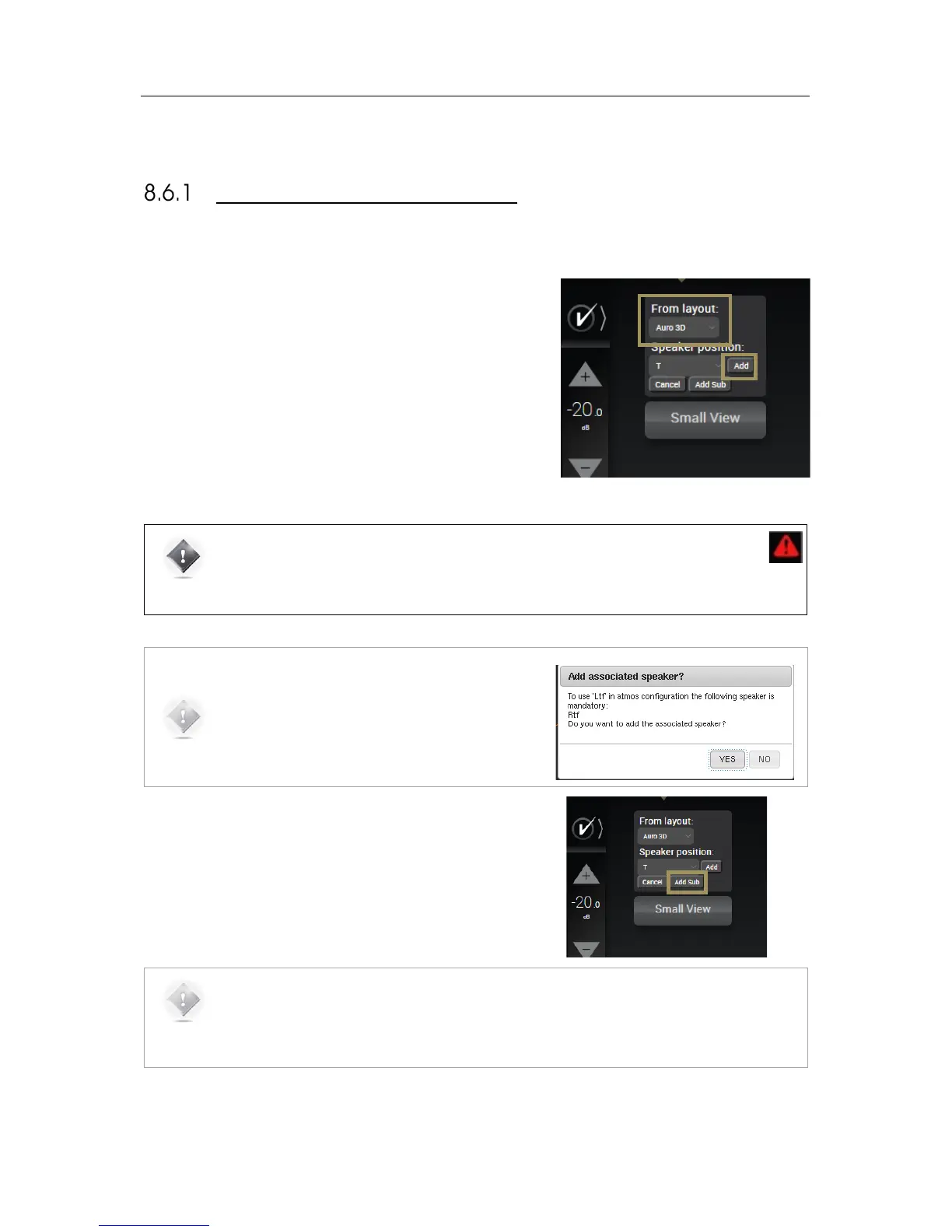 2. Click on the Add Sub button below the Speaker position drop-