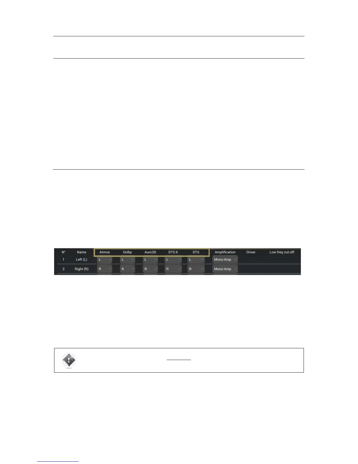 • DTS:X: Layout used for native DTS:X content and Neural:X Up-mixer;