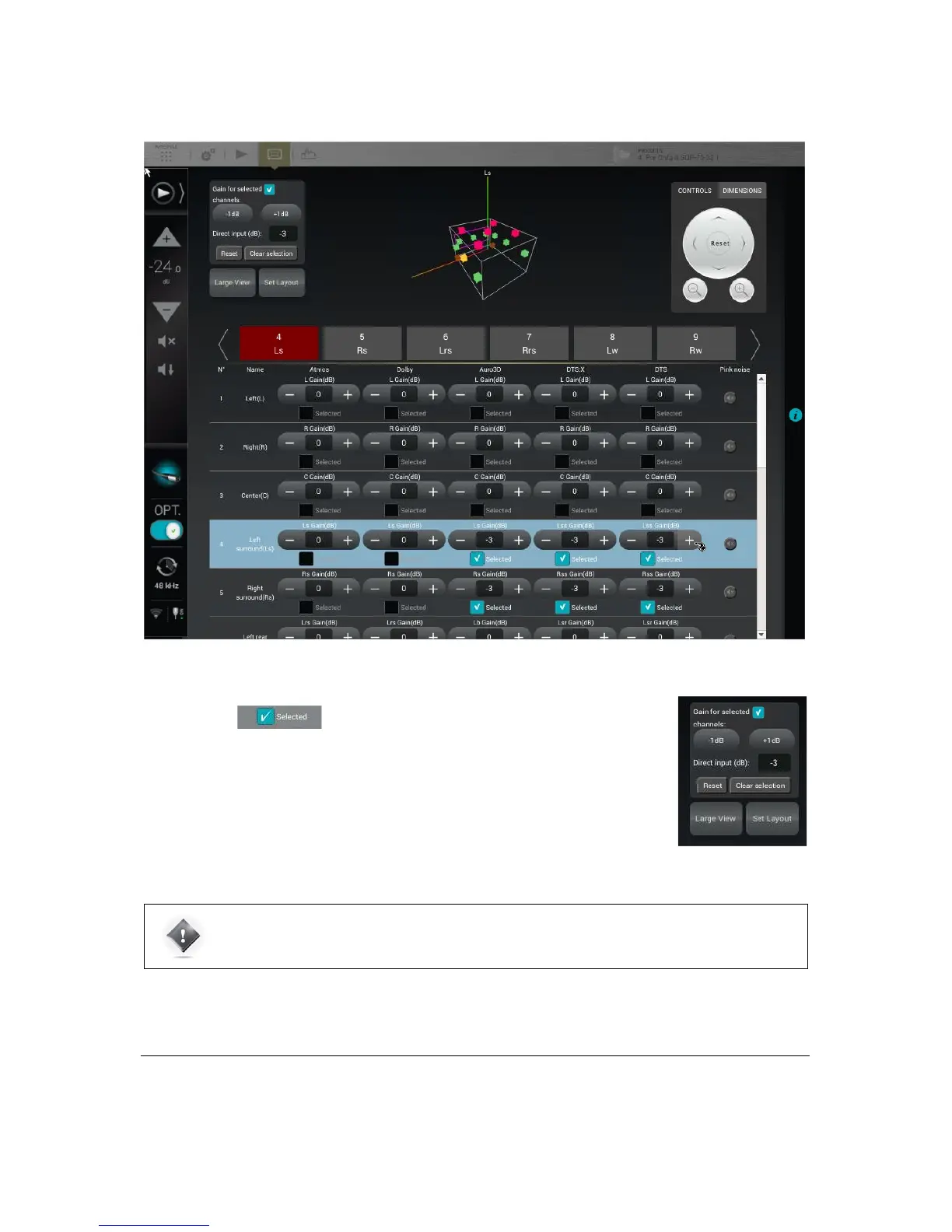 The Clear selection unselects every speaker, keeping the modified values.