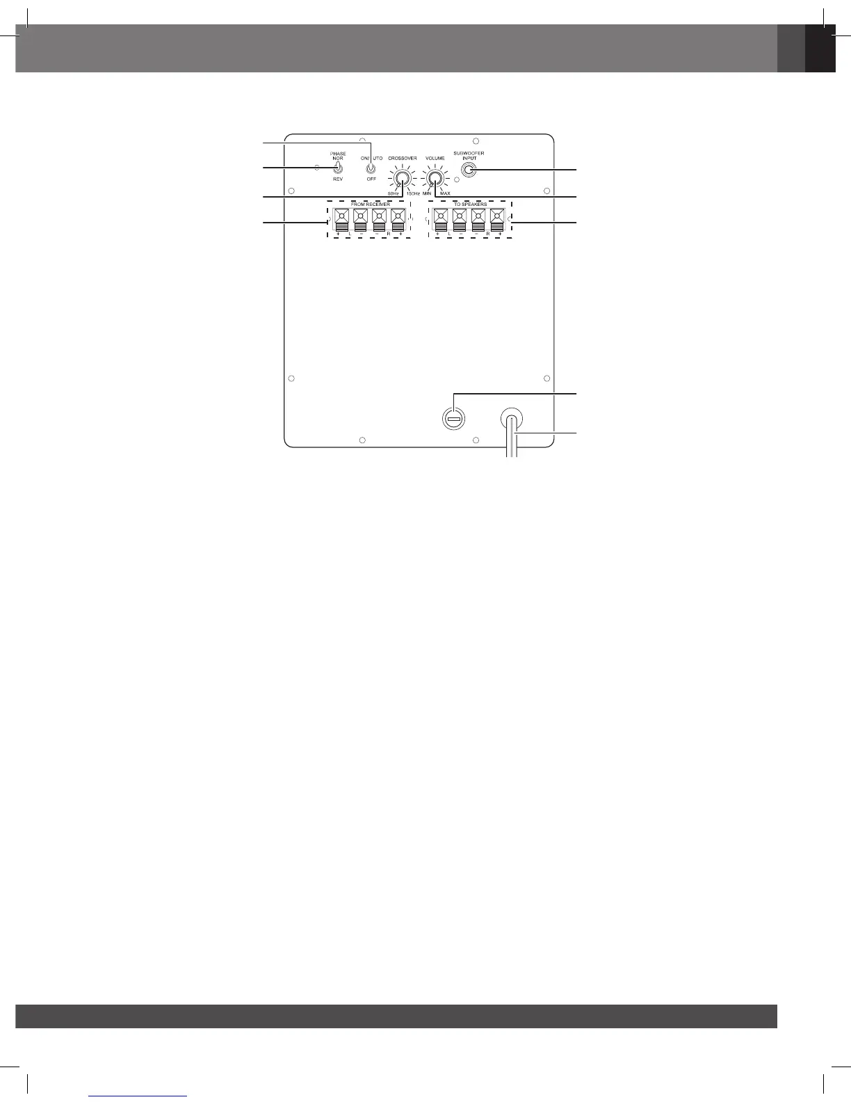 BedieneLeMenTe und ansChLüsse auF der rüCkseiTe des suBwooFers