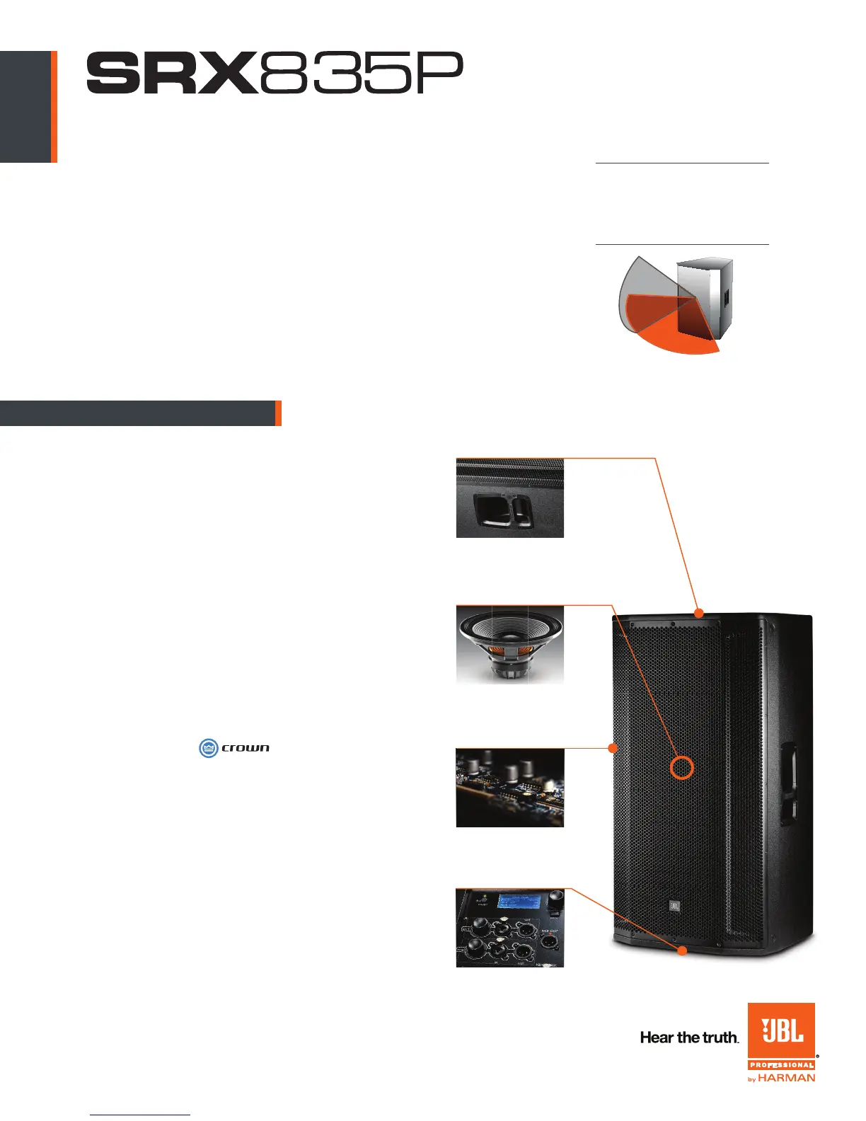 JBL Drivers, proprietary 2,000 Watt Crown amplifi cation, Crown Front-End DriveCore Technology,