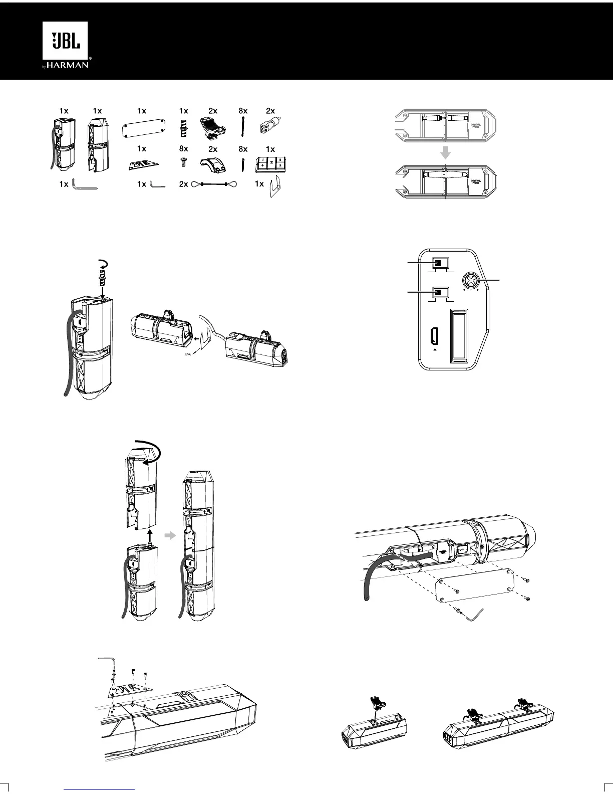 6. Attach the rear bridge plate to the two speakers, using the small hex wrench and
