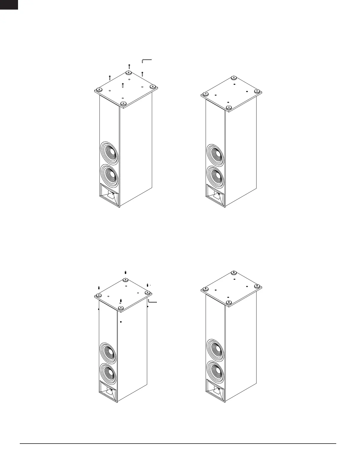 4. Using the 4 mounting screws and the provided tool attach the base to the speaker. Do not over tighten.