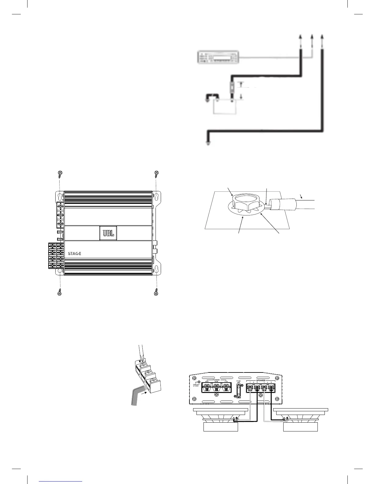 • Прикрепите усилитель к монтажной поверхности с помощью четырех
