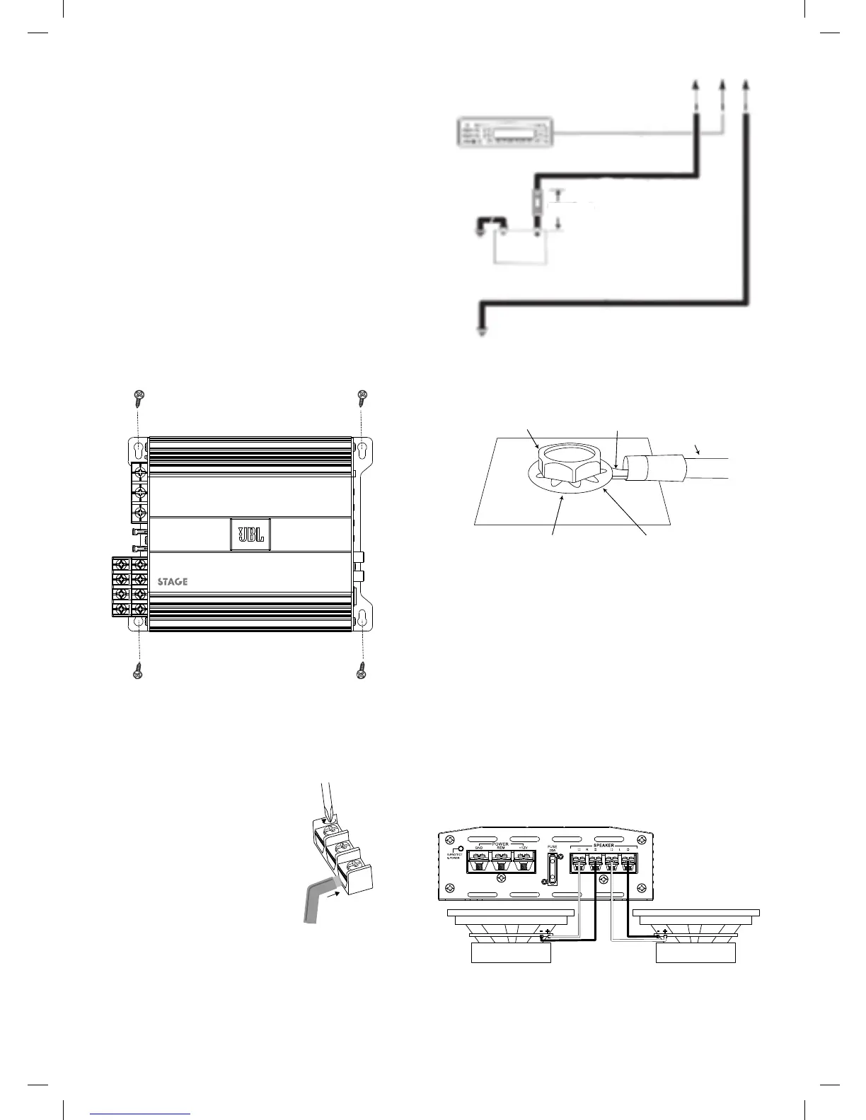 höger högtalare till terminalerna R+ och R-.