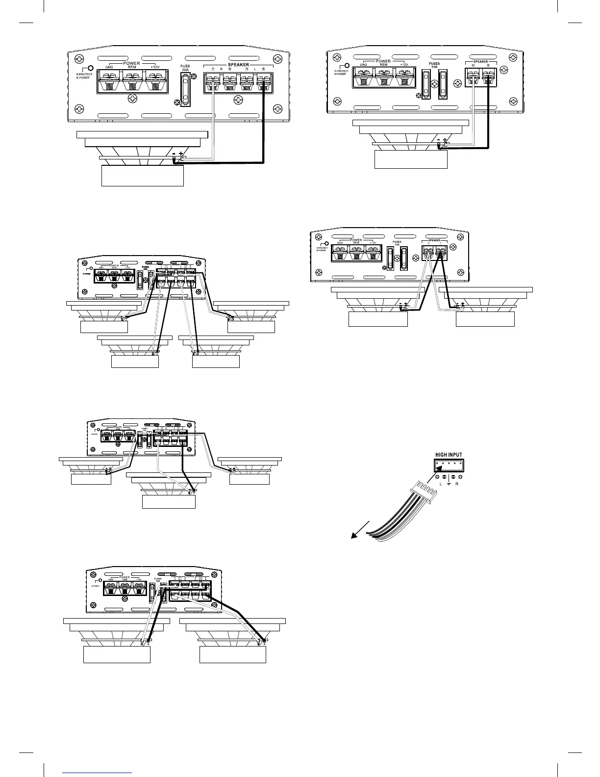 • 2-kanavainen (sillattu) käyttö:Liitä yhden kaiuttimen + -johdin