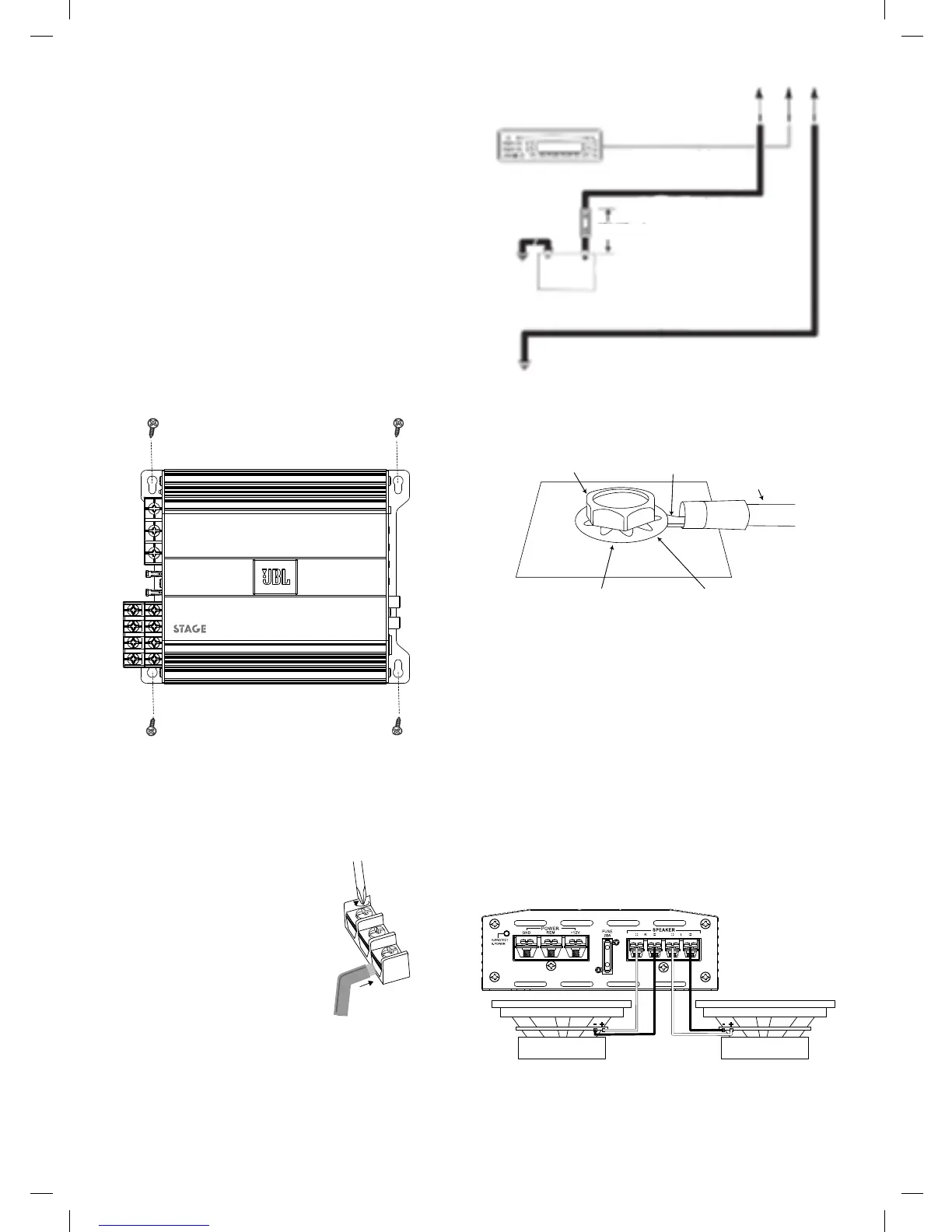 참고: 앰프를 완전히 장착하기 전에 앰프에 모두 연결하는 것이 더 편리할